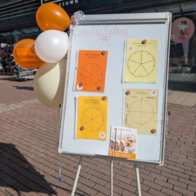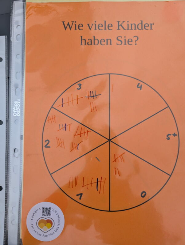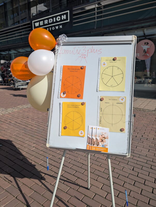 Bei bestem Wetter waren wir von 10 bis 18 Uhr im Einsatz – von Mehrkindfamilien für Mehrkindfamilien. Besonders beliebt waren die Glitzertattoos, die drei fleißige Helferinnen im Akkord aufmalten. Viele Kinder probierten sich außerdem am Riesen-Jenga, bei dem auch die Erwachsenen ihren Spaß hatten. Als kleine Belohnung gab es Gummibärchen, Luftballons oder Mini-Waffeln – ein Magnet für Groß und Klein.